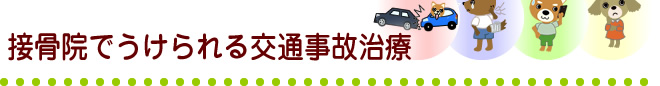 また交通事故で一番多い“むちうち”(頸椎捻挫)は事故当日よりも翌日以降に症状が悪化することがあります。こうした場合でも接骨院にご相談頂ければ患者様の訴えた患部、症状に合わせて施術を受けて頂く事が出来ます。